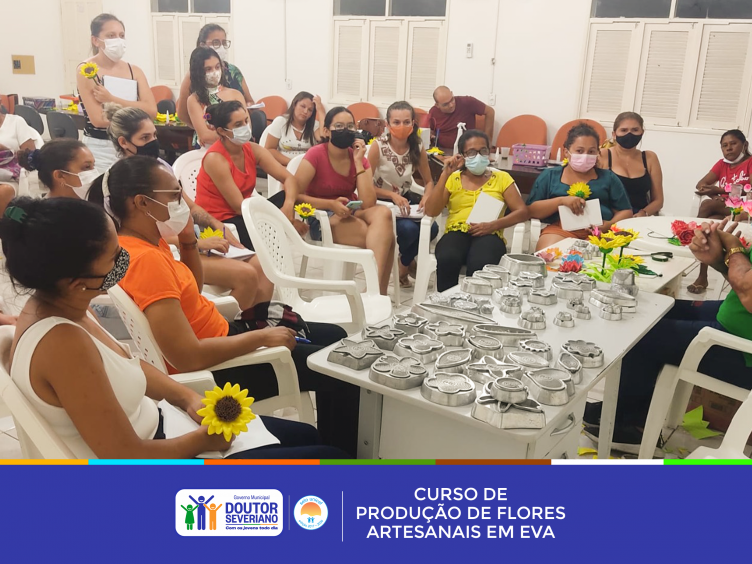 Aconteceu entre os dias 14 e 18 de fevereiro de 2022, o curso de flores em EVA no CRAS (Centro de Referência de Assistência Social), ministrado pelos artesãos da empresa JC Flores Johnson e Samuel. Participaram do curso 81 (oitenta e uma) senhoras e 01 (um) jovem, incluindo o público da zona rural e urbana nos horários da manhã, tarde e noite. O Município na Gestão "Com os Jovens Todo Dia" fez a parceria custeando hospedagem com alimentação dos monitores e alguns materiais como arame, tinta, material gráfico e outros instrumentos para execução do curso. Para incentivar e colaborar com os artesãos do município, a Sec. Mun. de Assistência Social investiu na aquisição de 02 kits de frisadores, sendo cada kit com 12 peças de diferentes modelagens para a confecção de arranjos florais, que ficarão disponíveis para o seu uso no próprio equipamento social da Secretaria.