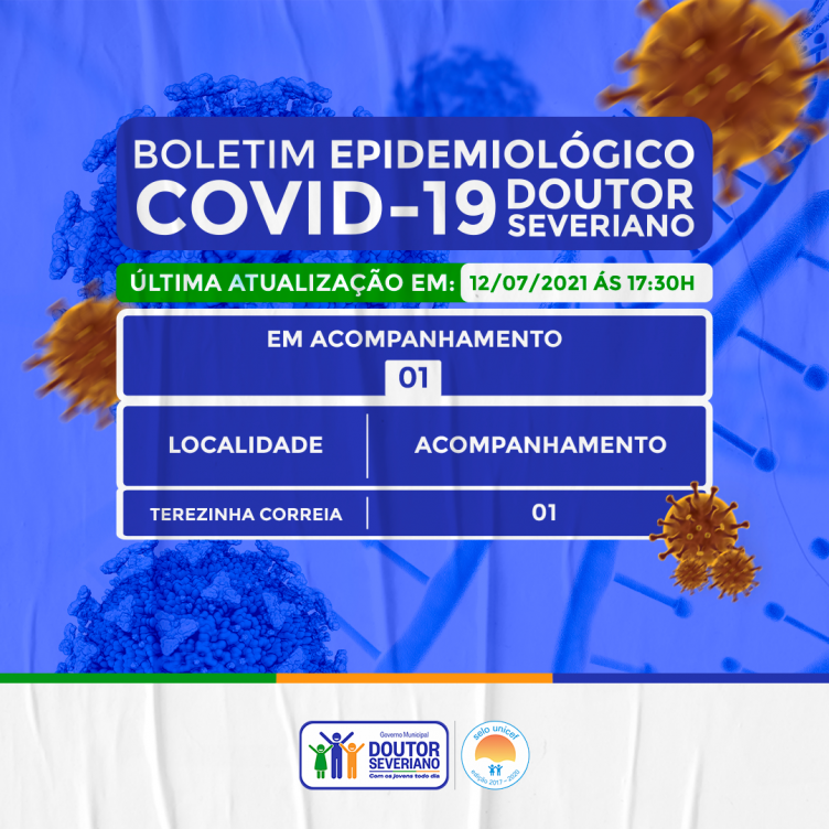A Gestão Municipal de Doutor Severiano (RN) por intermédio da Secretaria de Saúde, informa dados atuais sobre os casos confirmados, hoje dia 12/07, Segunda-Feira.